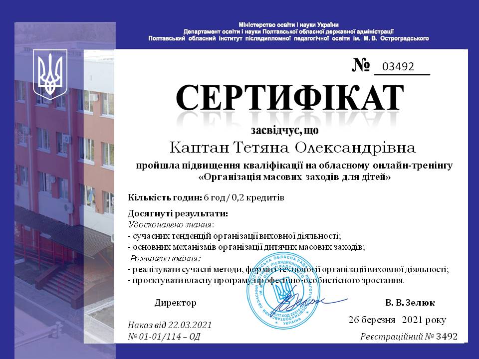 Блог педагога-організатора Каптан Тетяни Олександрівни